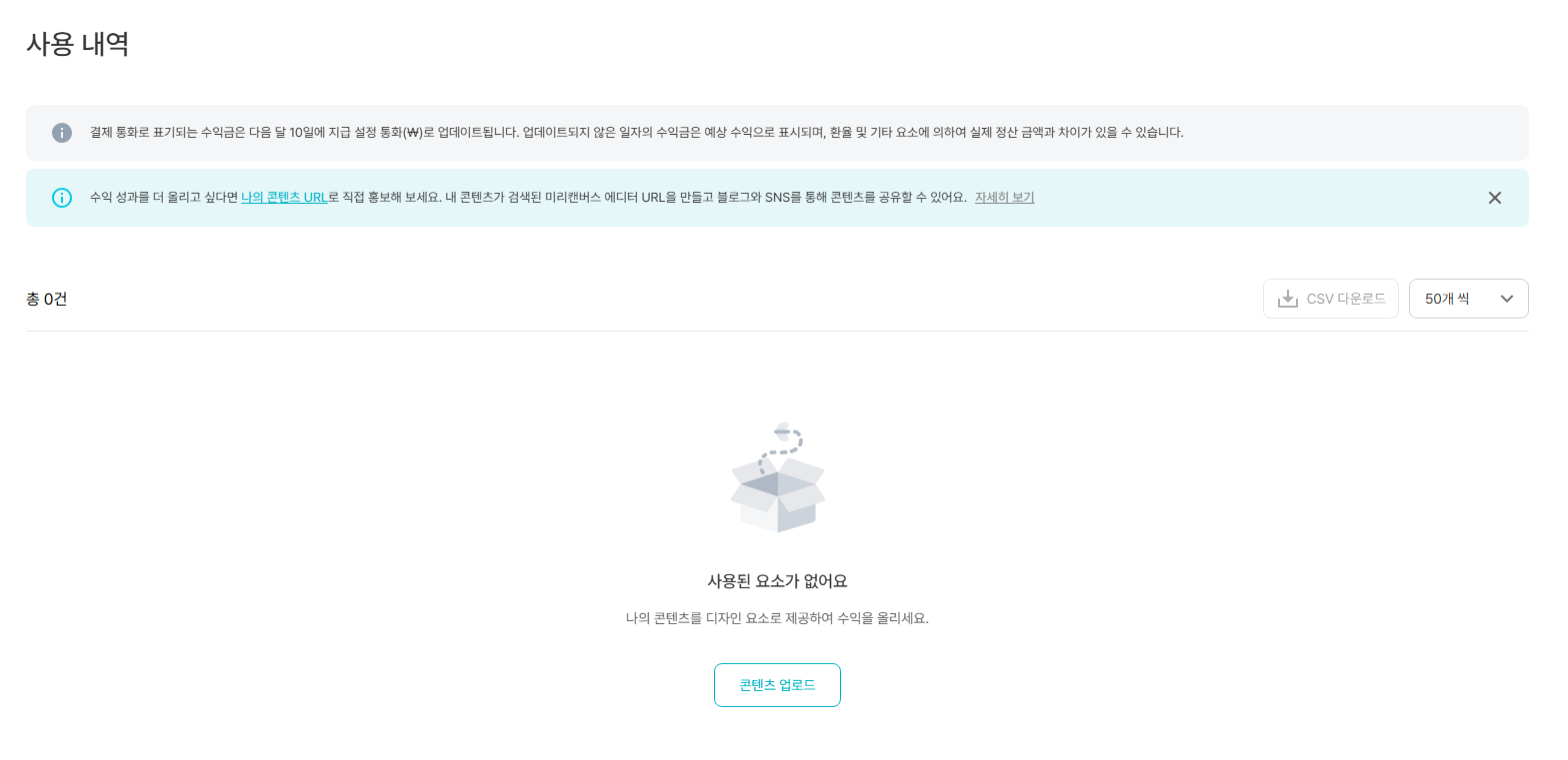 저는 등록한지 3일 정도가 지났는데 심사중인 콘텐츠가 많고, 승인난 콘텐츠는 아직까지 사용자가 없어 수익이 나진 않았지만 어떤 식으로 수익이 발생하는건지 확인을 해두었답니다.